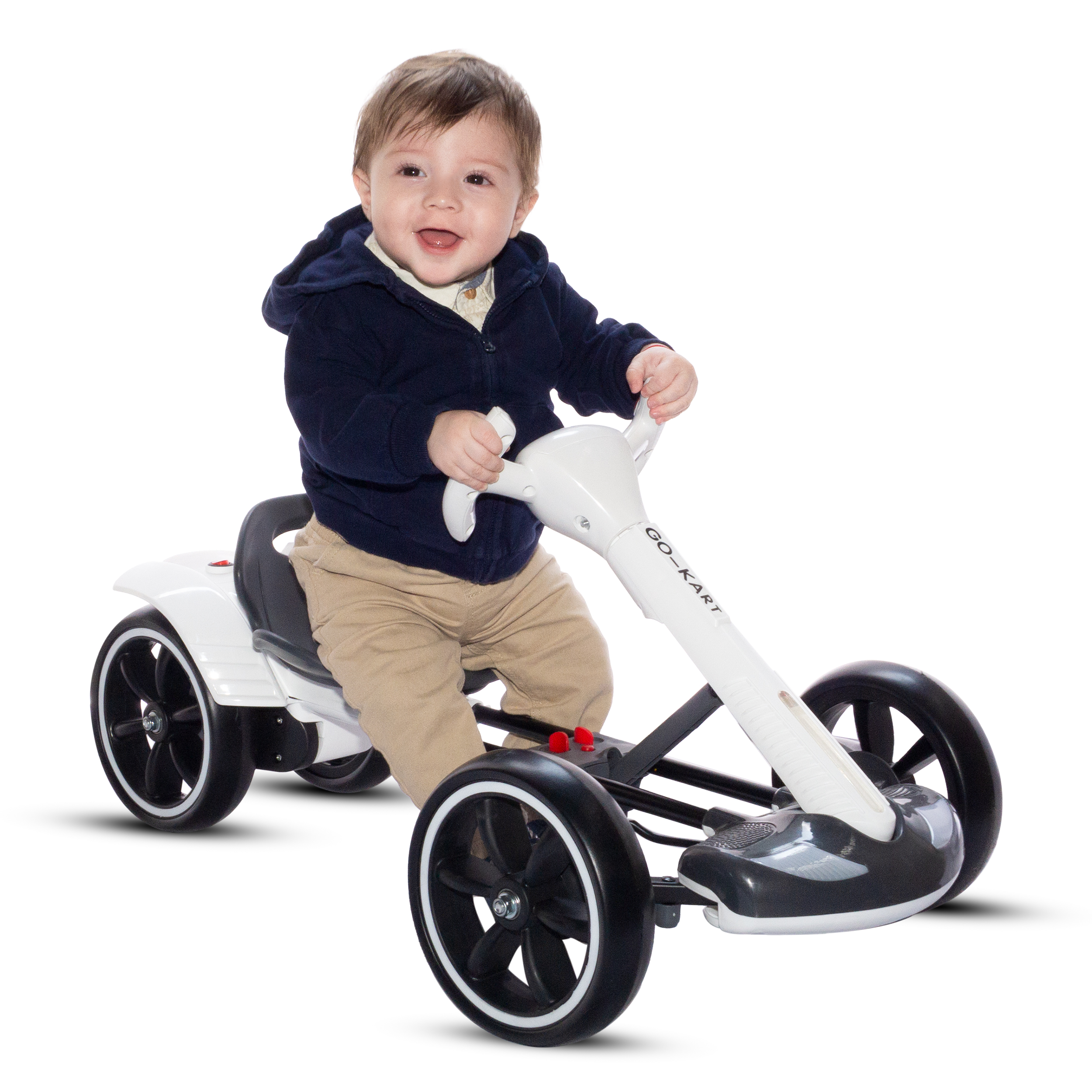 GoKart infantil Trekky Toys MINI RACER, diseñado especialmente para bebés y niños pequeños que comienzan a explorar el mundo sobre ruedas. Con un diseño estable, seguro y ergonómico, este GoKart ofrece horas de diversión mientras estimula la coordinación y el movimiento.